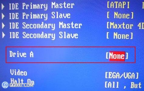 解决办法:在BIOS设置中关闭检测软盘驱动器,在开机时按下Del键进入BIOS设置,通常在第一项设置中,查找Drive A或Drive B,按键盘上的PgUp或PgDn调整,将它们的设置为“None”不检测,或找到关于“Floppy”的选项,将这个选项设置为“None”不检测,最后按下F10(保存并退出),选择Yes,电脑重新启动后便可以解决开机按F1才能进系统的问题,如下图所示: