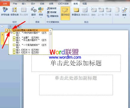 ⑤“接受修订”之后,稍等片刻,原来旧的演示文稿和新的演示文稿就可以完美合并了,并且原来演示文稿中的模板、动画特效等都保持不变;